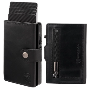 Portofel din piele pentru bărbați cu husă din aluminiu (negru)