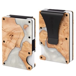 Husă din aluminiu cu clemă pentru card de credit (lemn + rășină albă)