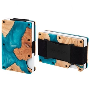 Husă din aluminiu cu bandă de cauciuc pentru carduri de proximitate RFID (lemn + rășină turcoaz)