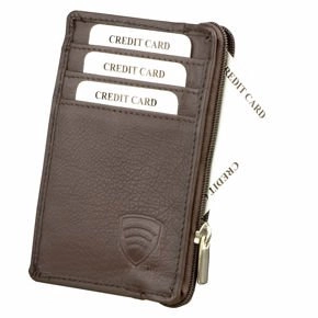 Portofel mic cu fermoar pentru carduri din piele (maro)