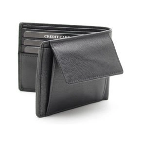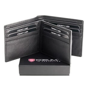 Portofel trifold din piele pentru protejarea cardurilor de proximitate (Negru)