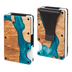 Husă din aluminiu cu clemă pentru card de credit (lemn + rășină turcoaz)