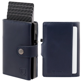 Portofel bărbătesc din piele cu buzunar exterior pentru carduri și carcasă din aluminiu (albastru marin)
