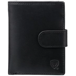 Portofel bărbătesc din piele cu buzunar exterior pentru carduri și carcasă din aluminiu (negru)