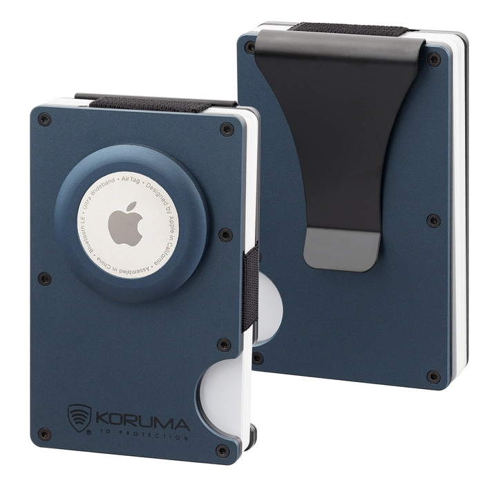 Cartonieră din aluminiu cu suport AirTag de la Apple (albastru)