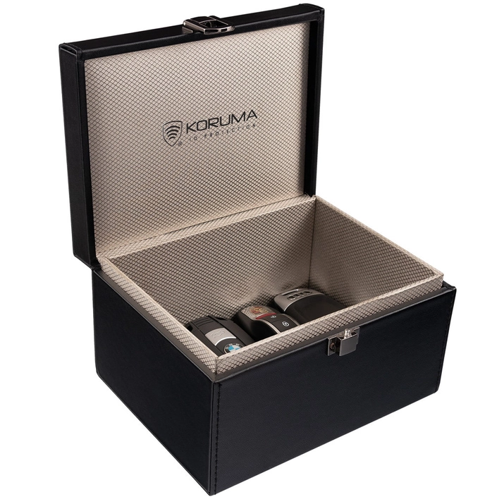 Introducerea unui special cutie fără cheie, care, datorită designului său special, securizează cheile de mașină, astfel încât un hoț care stă la ușa unei case nu poate intercepta semnalul de la cheie. Acest tip de container funcționează pe principiul așa-numitei cuști Faraday. Cutia Faraday este căptușit în interior cu un material special de ecranare, care, datorită proprietăților sale, blochează semnalele care intră și ies din cutie. Pentru ca blocarea semnalului să fie eficientă, cutia trebuie să fie complet închisă. Utilizarea cutie de securitate pentru chei auto fără cheie marca Koruma® reduceți la minimum riscul de furt dintr-o mașină parcată în apropierea locuinței dvs.