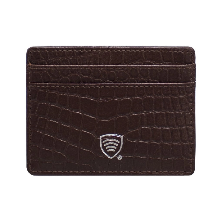 Husă antifurt din piele pentru carduri de proximitate RFID (maro, Croco)