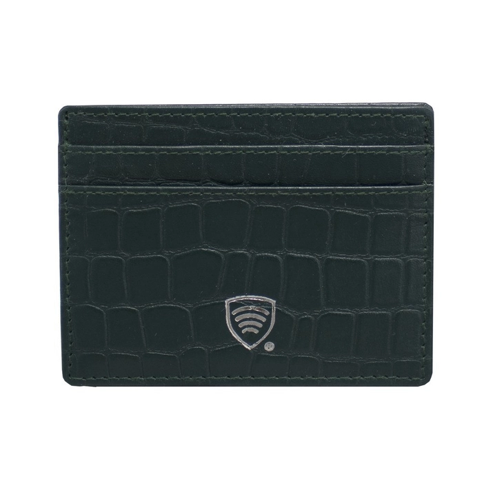 Husă antifurt din piele pentru carduri de proximitate RFID (Verde, Croco)