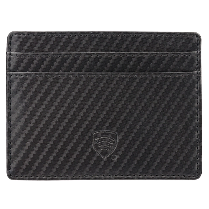 Husă din piele cu blocarea cardurilor de proximitate RFID (negru, carbon)