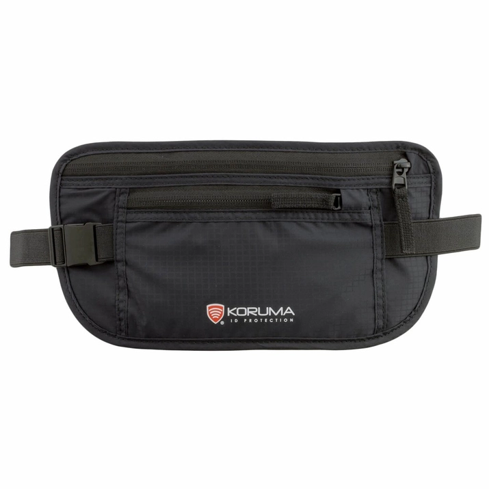 Husă de călătorie discretă pentru șolduri cu securitate RFID pentru protejarea cardurilor de proximitate și a pașapoartelor biometrice împotriva furtului de date. Punga este confecționată din nailon, care este rezistent la apă.