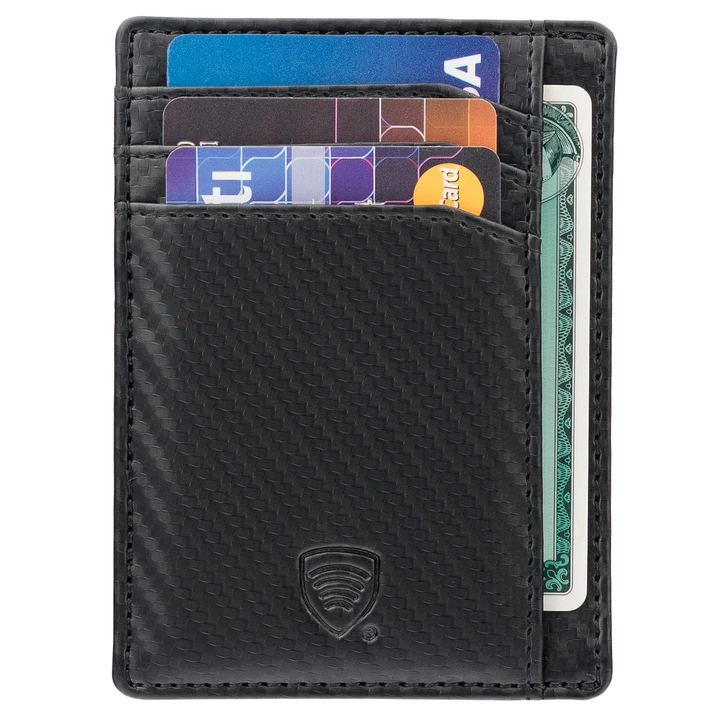 Husă subțire din piele pentru carduri de proximitate RFID (negru, carbon)