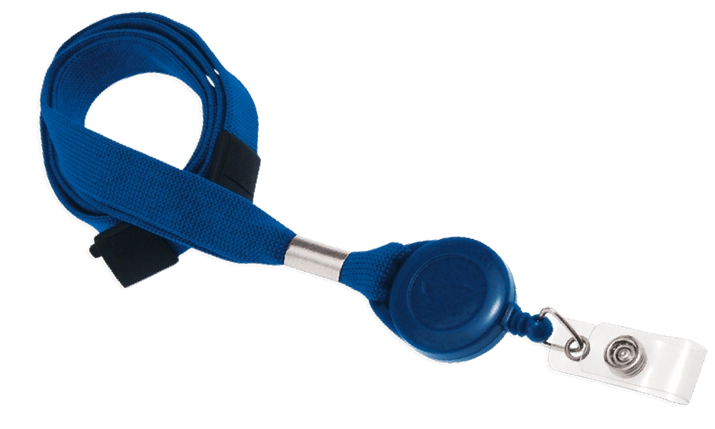 Lănțișor albastru cu dispozitiv de siguranță în caz de tragere puternică a lănțișorului. Curea din poliester care se termină într-un inel de chei de tip yoyo cu un cordon de tragere pentru aproximativ 700mm. Cablul se termină cu o curea de vinil cu un dispozitiv de fixare.