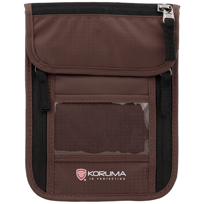 Portofel Anti-Furt pentru Gât cu Protecție RFID STOP™ - Siguranță Maximă pentru Documente și Carduri (Maro)