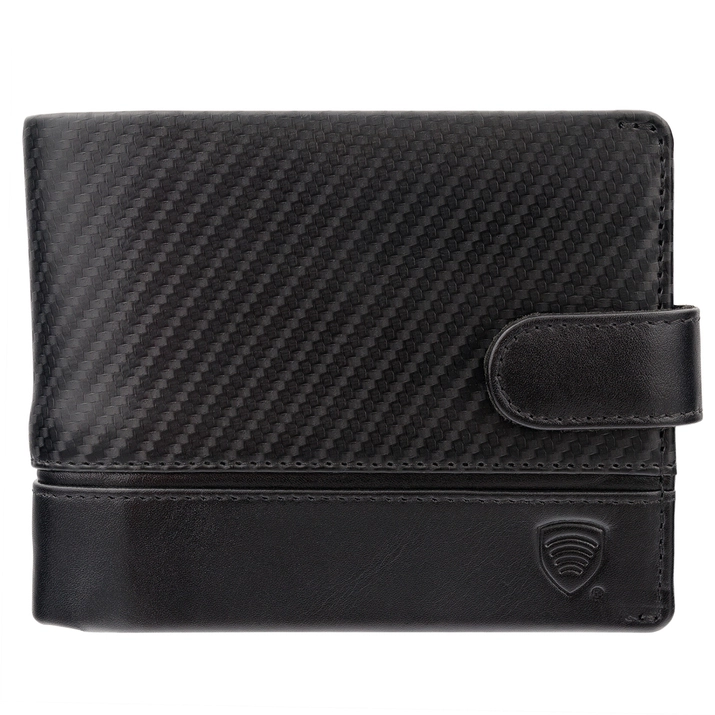 Portofel bărbătesc din piele cu fermoar și protecție RFID BLOCK (negru, carbon)