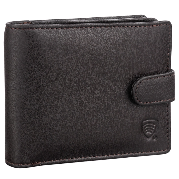 Portofel clasic pentru bărbați din piele maro cu securitate RFID BLOCK™ pentru carduri de proximitate.