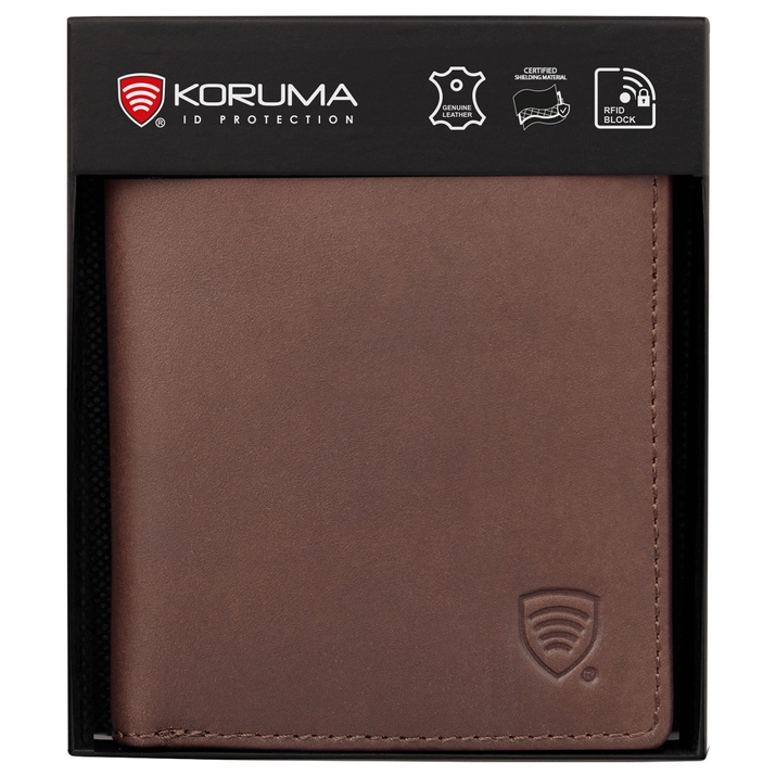 Portofel foarte mic, de culoare maro, cu protecție integrată pentru cardurile de proximitate RFID BLOCK™. Fabricat din piele naturală de vacă moale la atingere. Portofelul poate conține o cantitate semnificativă de carduri, monede și bancnote. Așa-numitul buzunar fereastră poate fi folosit pentru a plasa fotografii ale celor dragi. Portofelul este ambalat într-o cutie elegantă.