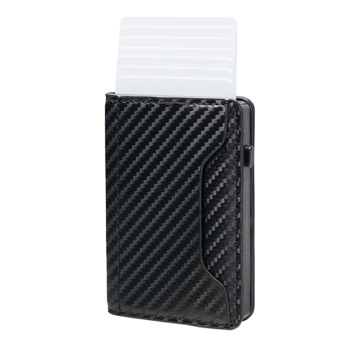 Portofel din aluminiu cu ejector și securitate pentru carduri de proximitate (negru, carbon)