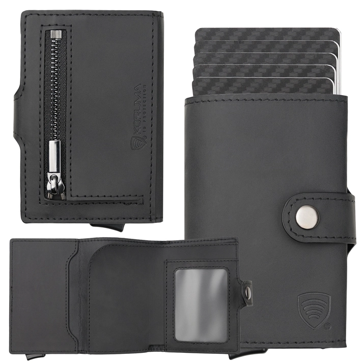 Uitați de compromisuri! Portofelul nostru elegant, în care am combinat rezistența unei carcase din aluminiu cu farmecul clasic al pielii, este conceput pentru a răspunde tuturor așteptărilor dumneavoastră. Această combinație oferă două sloturi suplimentare pentru carduri, inclusiv o așa-numită fereastră, care este ideală pentru o carte de identitate sau fotografii ale celor dragi.