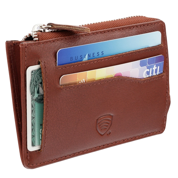 Portofel mic cu fermoar pentru carduri din piele (maro)