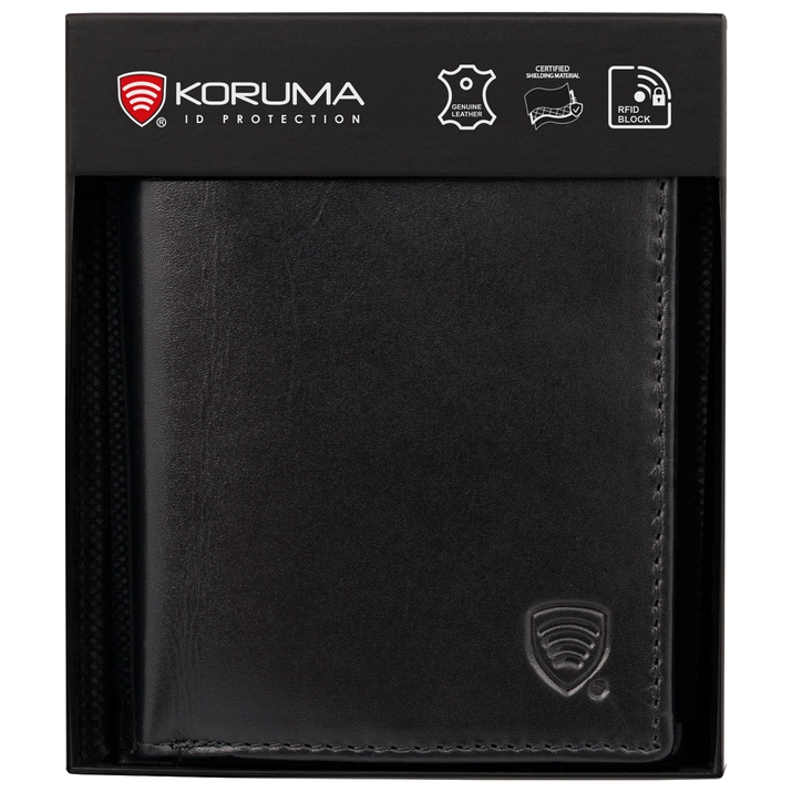 Portofel mic și subțire din piele neagră pentru bărbați cu protecție de proximitate RFID BLOCK încorporată pentru carduri de proximitate.