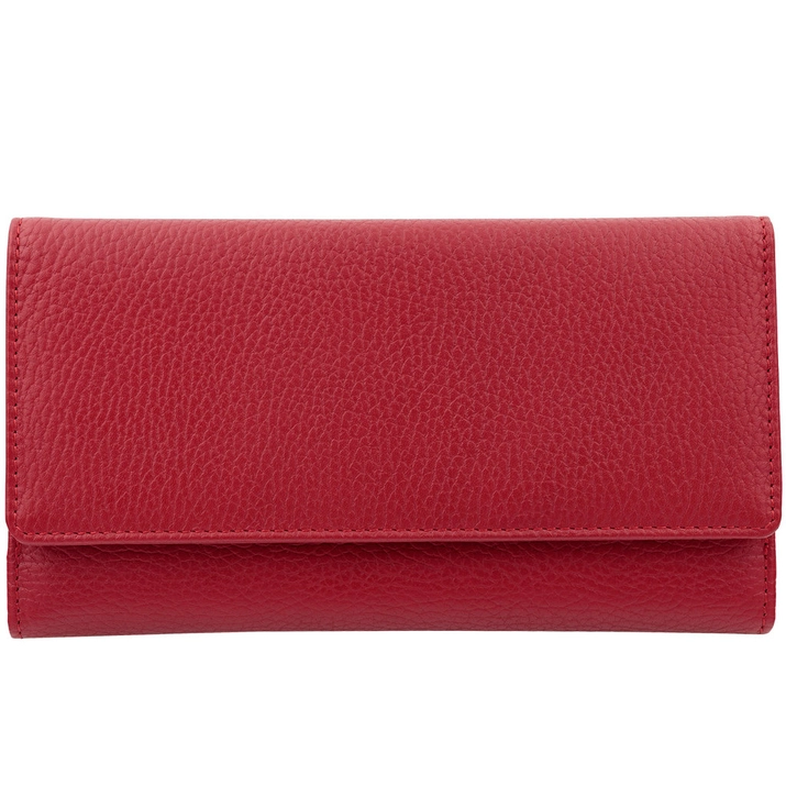 ✓ CALITATE ȘI ELEGANȚĂ - portofel pentru femei din piele naturală netedă roșie cu fața spre roșu. Accesoriile aurii și logo-ul adaugă clasă și eleganță.