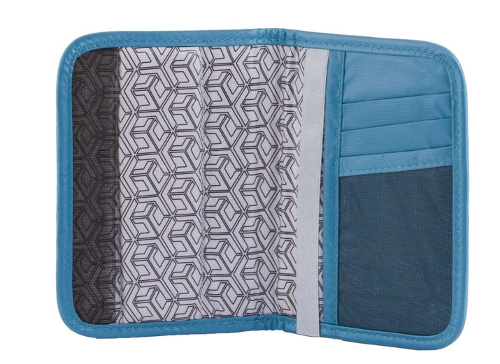Portofel pentru carduri și pașapoarte. Fabricat din poliester. Securitate încorporată pentru carduri de proximitate și pașapoarte biometrice.