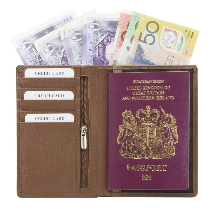 Portofel pentru protejarea cardurilor de proximitate și a pașaportului biometric (maro)