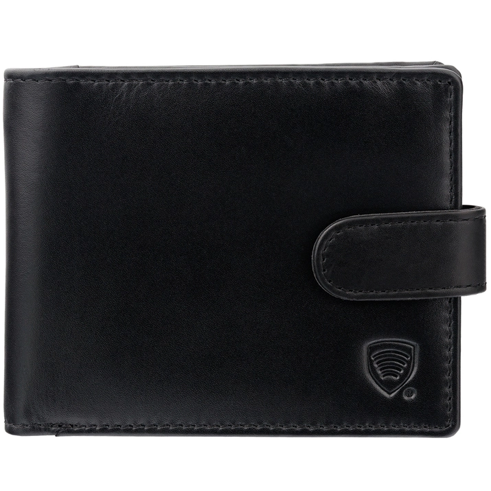 Portofel clasic pentru bărbați din piele neagră cu securitate RFID BLOCK™ pentru carduri de proximitate.