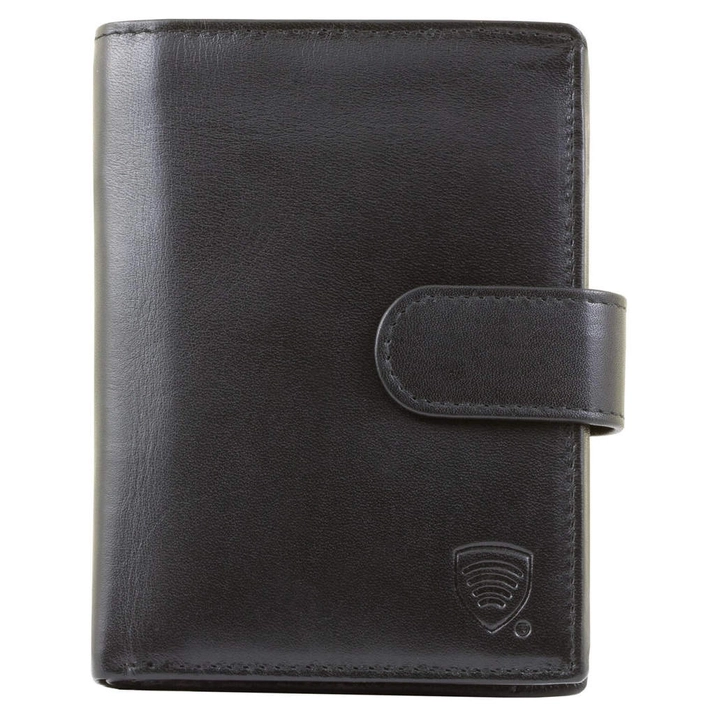 Portofel vertical RFID din piele cu închidere de proximitate pentru carduri (negru)