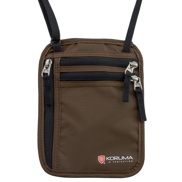 Pungă de Gât Discretă Antifurt cu Protecție RFID pentru Bani și Documente (Maro)